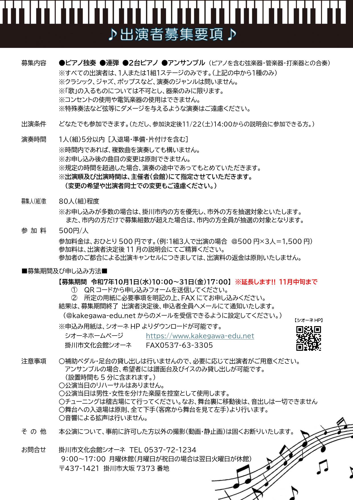 演奏時間:1人(組)5分以内 ※入退場・準備・片付けを含む