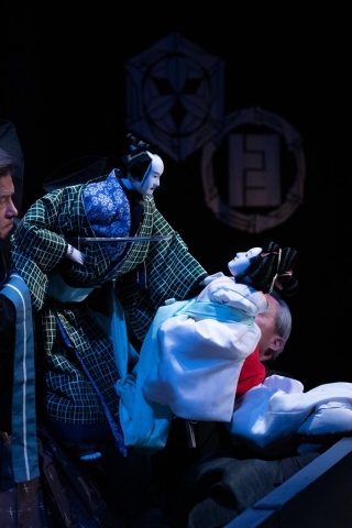 太夫・三味線・人形遣いの三業が互いに息を合わせ“三位一体”で創り上げられる舞台は、世界のほかの人形劇とは全く異なる文楽ならではの特徴です。