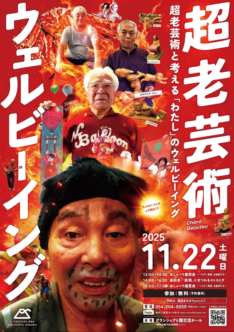 座談会の前後には、唯一無二の超老芸術作品と、その作者を囲んでの鑑賞会も行います。 表現を通じた「よりよい生き方」のヒントを見つけに、ぜひお越しください。